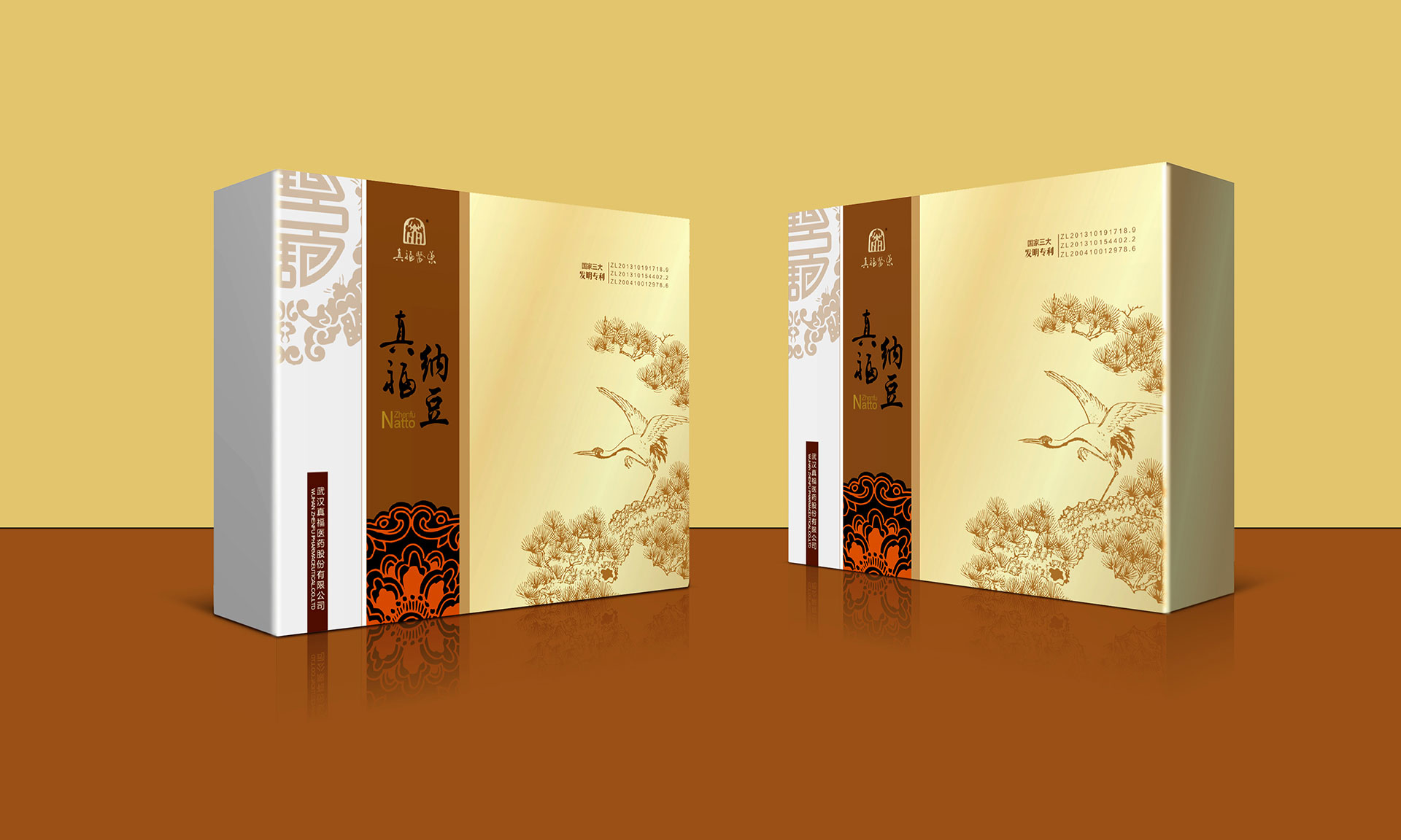 心腦血管疾病是人類健康的頭號殺手,中國人的死亡80%就是心腦管疾病。武漢大學(xué)生命科學(xué)院通過現(xiàn)代生物技術(shù),在農(nóng)產(chǎn)品大豆中提煉出枯草桿菌研制成的真福納豆,獲得國家三項發(fā)明專利。該產(chǎn)品對緩解和輔助治療心腦血管疾病有著顯著的效果,同時不對人產(chǎn)生任何傷害。是一種綠色健康的產(chǎn)品。信立浩達(dá)設(shè)計團(tuán)隊對產(chǎn)品價值深度挖掘,在產(chǎn)品包裝設(shè)計上用中國傳統(tǒng)的“福祿壽禧、松鶴延年”文化來表達(dá),同時反復(fù)訴求:讓中國人多活十年!這樣產(chǎn)品的價值,通過福壽文化、松鶴文化得到了形象的傳遞,深受中老年人的心理認(rèn)同。