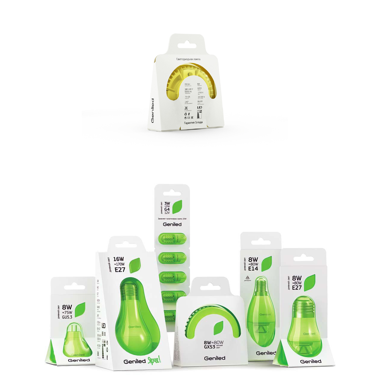 這是一款燈泡包裝,由俄羅斯Evgeniy Pelin設計。在展現產品時,不僅通過明亮的黃綠配色,傳達的年輕時尚感讓產品與其他同類產品產生區分,同時減少包裝用紙,很好的傳遞了環保自然節能的理念,與包裝形式渾然一體。