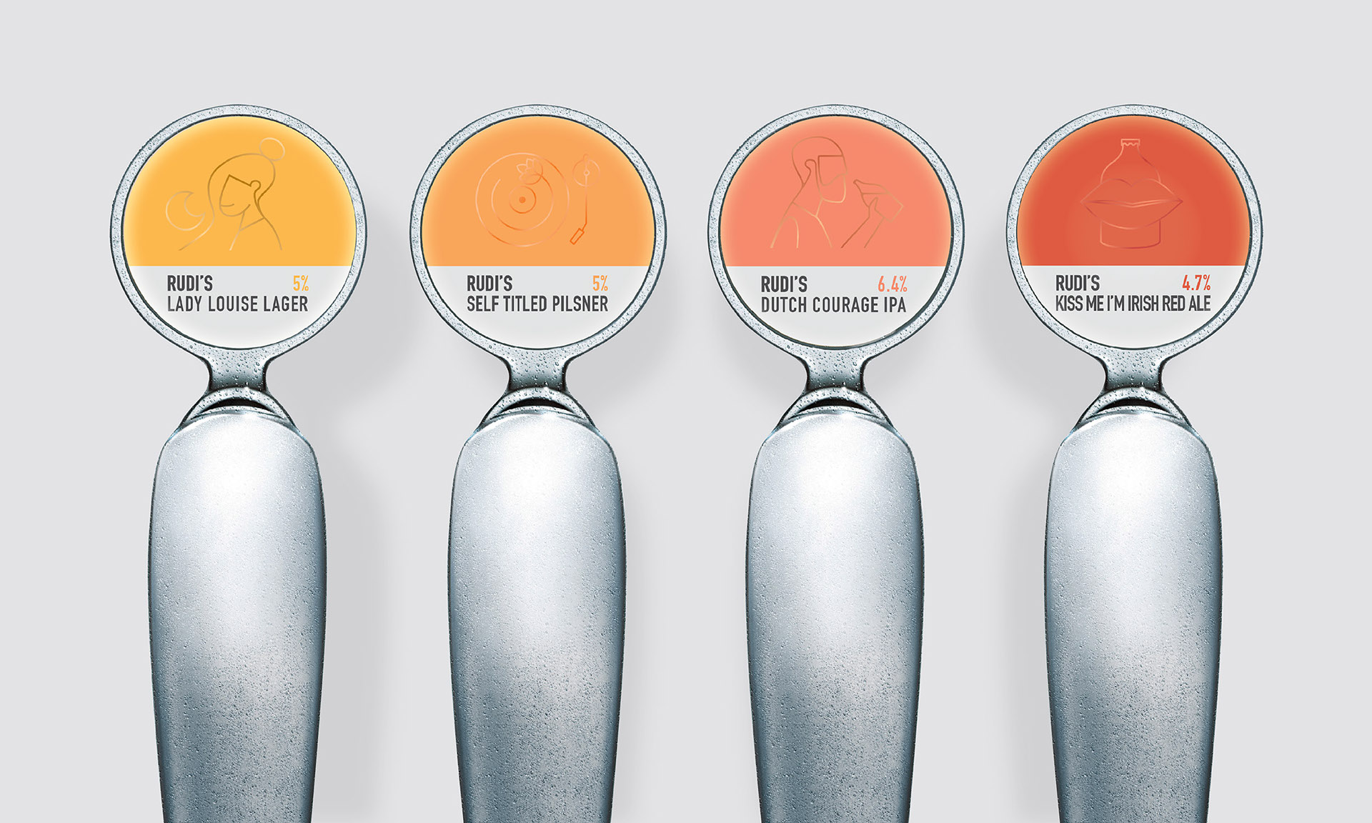 這是新西蘭的啤酒品牌Rudi's Beers包裝設(shè)計(jì)以紅、黃、橘三個(gè)暖色為主,傳達(dá)一種喝啤酒時(shí)的開心歡樂的情緒,再搭配鋁罐的金屬質(zhì)地來呈現(xiàn)啤酒的濃郁醇厚,結(jié)合插畫的形式創(chuàng)造了一款獨(dú)特個(gè)性的包裝設(shè)計(jì),在競爭激烈的精良啤酒市場中清晰的區(qū)分了他們的品牌。