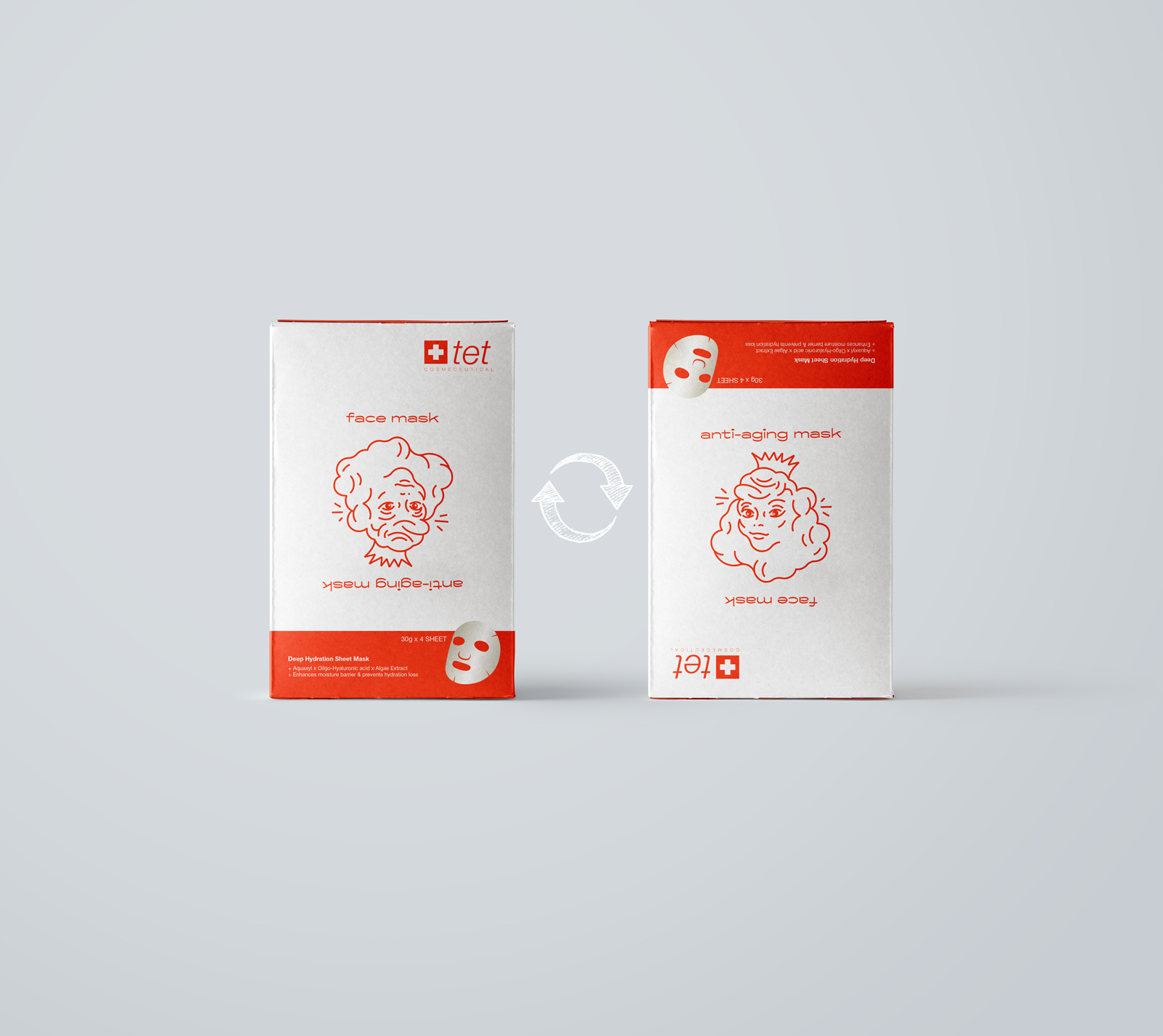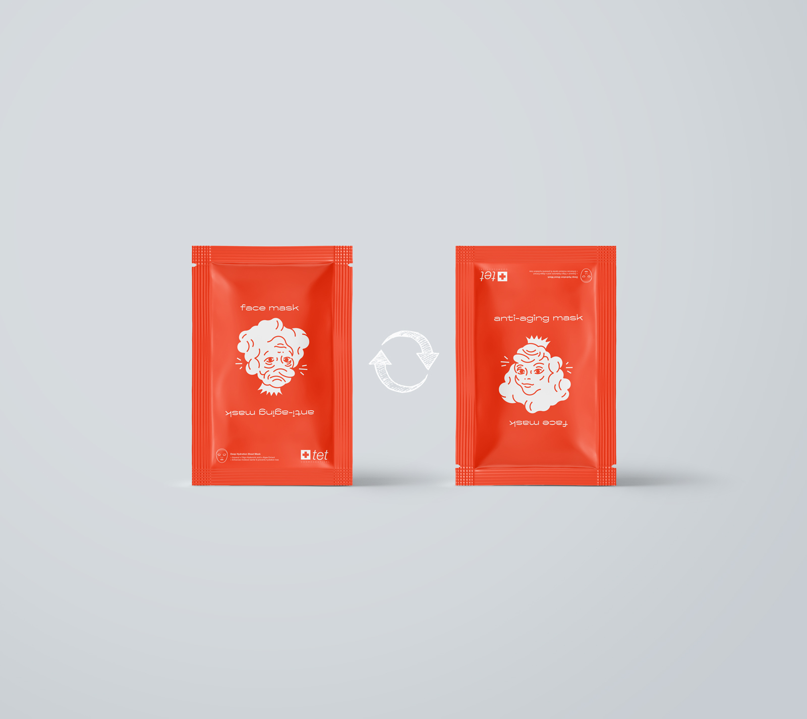 Anti-aging是一款抗衰老面膜,采用幽默風(fēng)趣的表達(dá)手法將產(chǎn)品的特點(diǎn)清晰展現(xiàn)出來(lái),將包裝的口袋翻轉(zhuǎn)過(guò)來(lái),立刻把一個(gè)皺巴巴的老太太變成了一個(gè)年輕漂亮的女人,趣味性十足,抓住了人對(duì)有趣事物充滿好奇的心理。