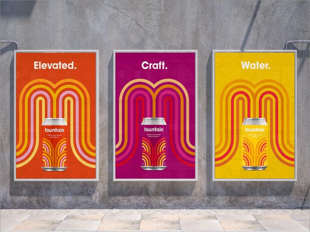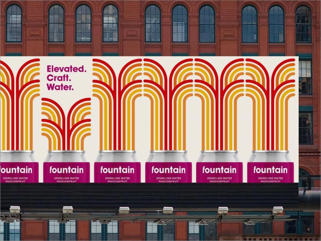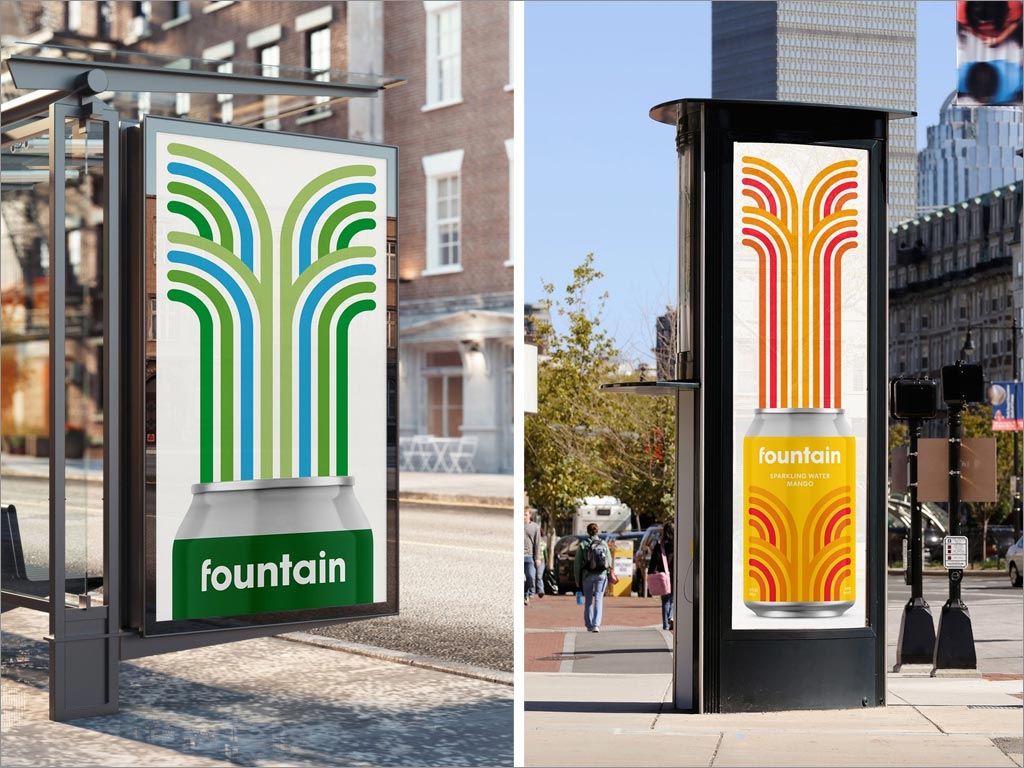 五角星設計公司作為Fountain品牌logo和包裝設計服務商,以幫助他們的品牌在一個已經很擁擠的空間中脫穎而出五角星設計公司決定出奇制勝,將此款飲料定位在好玩、有趣、活力四射的角度,采用彩色的方法,以圓形和有機的線性圖案作為logo設計的基礎,該設計從包含蘇打水的天然成分以及品牌名稱中獲得靈感,創造了虛擬噴泉的形象,因為每個人都有打開易拉罐被噴灑的時候,就像他的品牌符號一樣,深入人心。