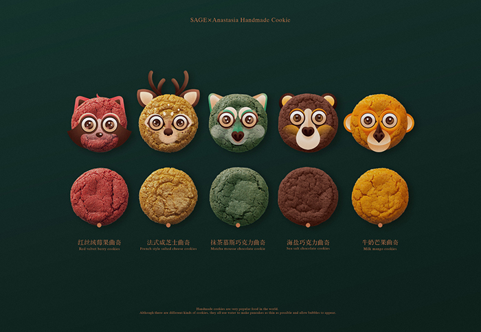 Anastasia納斯塔是一家專注高端手工曲奇的甜品品牌,創(chuàng)始人是一位美麗優(yōu)雅的女性,她希望把天然優(yōu)質(zhì)的產(chǎn)品理念融入品牌視覺,讓購買與品嘗它的顧客能感受到產(chǎn)品的心意與生活的詩意。用味蕾喚醒森林的手工曲奇,赤橙黃綠棕,食材的天然色彩打破視覺邊界,變身可愛的森林精靈,讓天然的美味伴著森林的微風,拂過每一個陽光耀眼的日子。創(chuàng)新設(shè)計的隨身小食盒,讓你將有趣的森林精靈盡收囊中。