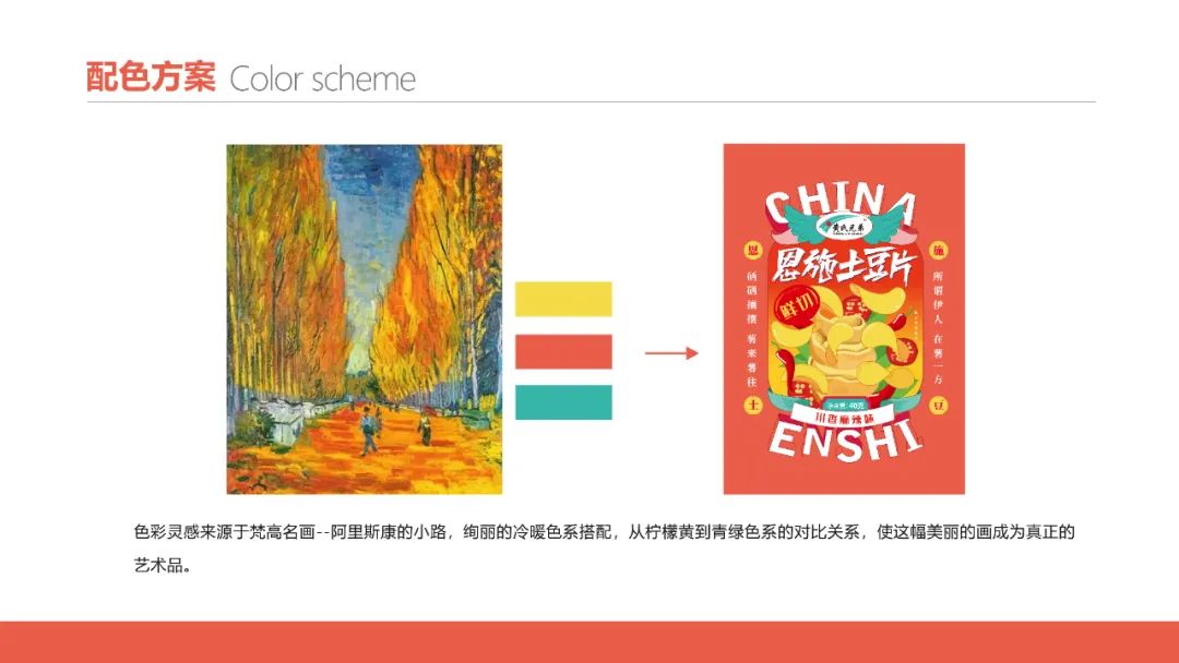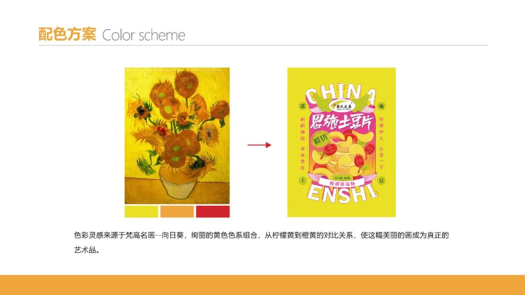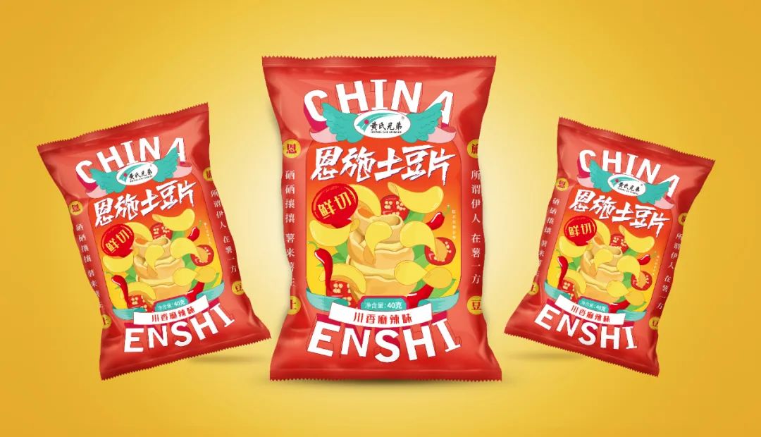在字體選擇上,我們首先嘗試了比較粗的方正字庫黑體字。在和主標標簽匹配后由于此款字體的字重太粗,放在一米開外測試發現識別不清,主要是筆畫太粗反而影響了閱讀識別,且字形整體生硬厚重,不太適合調性。經過分析思考,我們選擇了以手寫體為基調,體現文化感,它骨骼清晰,更易識別。方向找準后,在此基礎上進行加工修正。恩施土豆片產品的特性為年輕、時尚、潮流、個性化張揚的字體和產品整體氣質很吻合。